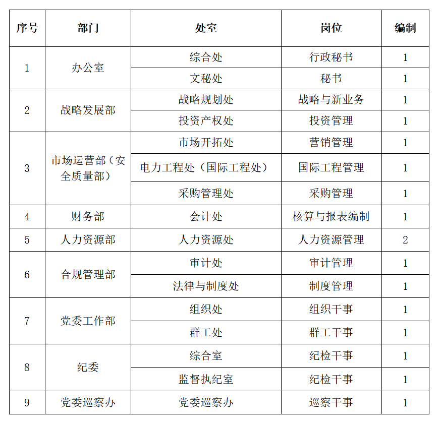 招聘职数共计17个(职位名称及职责内容以岗位说明书为准),具体设置如下: